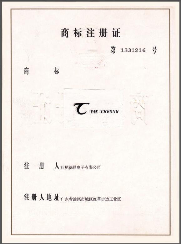 是汕尾德昌電子有限公司在中國的注冊商標之一,受法律保護,侵權(quán)必究。